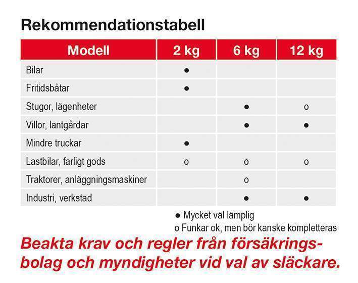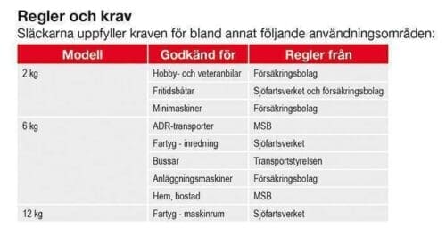 • Standard: SS EN 3, godkänd av myndigheter och försäkringsbolag