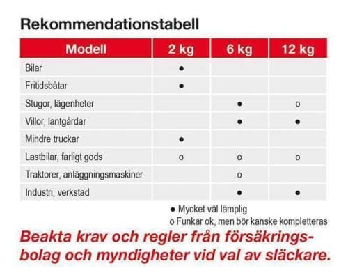 Brandsläckare pulver 6 kg är ett av de mest rekommenderade alternativen för både privat och professionellt bruk. Den används i bostäder, lantbruk, verkstäder, fordon och fartyg. Den uppfyller försäkringsbolagens krav för jordbrukstraktorer och anläggningsmaskiner och används även på fordon som transporterar farligt gods enligt ADR-reglerna från MSB.