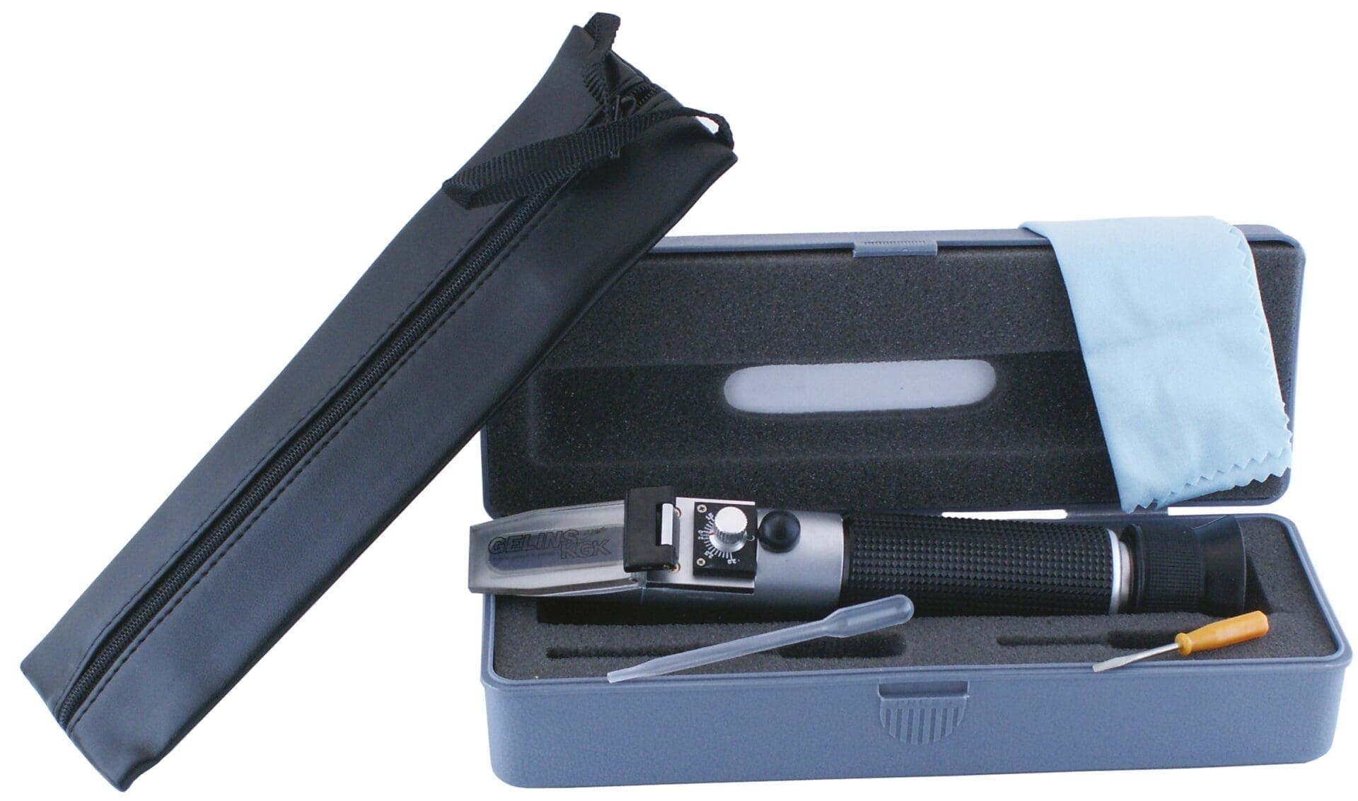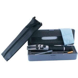Detta är ett optiskt vätskeprovare som mäter bromsvätskans (DOT 4) vatteninnehåll och vätskans kokpunkt. Bromsvätska är mycket hydroskopisk, har lätt för att ta upp vatten, varvid ångbildning kan uppstå vid bromsning, som försämrar bromsverkan betydligt. Vid kokpunkt under 220 ˚C är bromsvätskan påverkad och under 180 ˚C bör den absolut bytas. Tillverkad i metall. Levereras komplett i plastbox. Ett enkelt sätt att hålla rätt koncentration på sin vätska vilket är avgörande för lång livslängd.