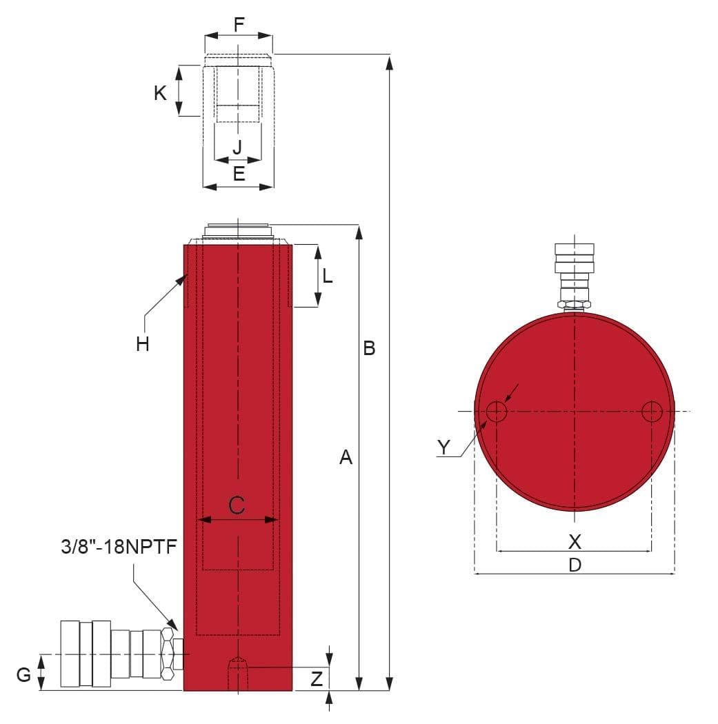 Cylindern är tillverkad i högkvalitativt solitt stål och utrustad med stödring som skyddar mot snedbelastning. Den kraftiga fjädern säkerställer snabb kolvretur, vilket gör arbetet mer effektivt.