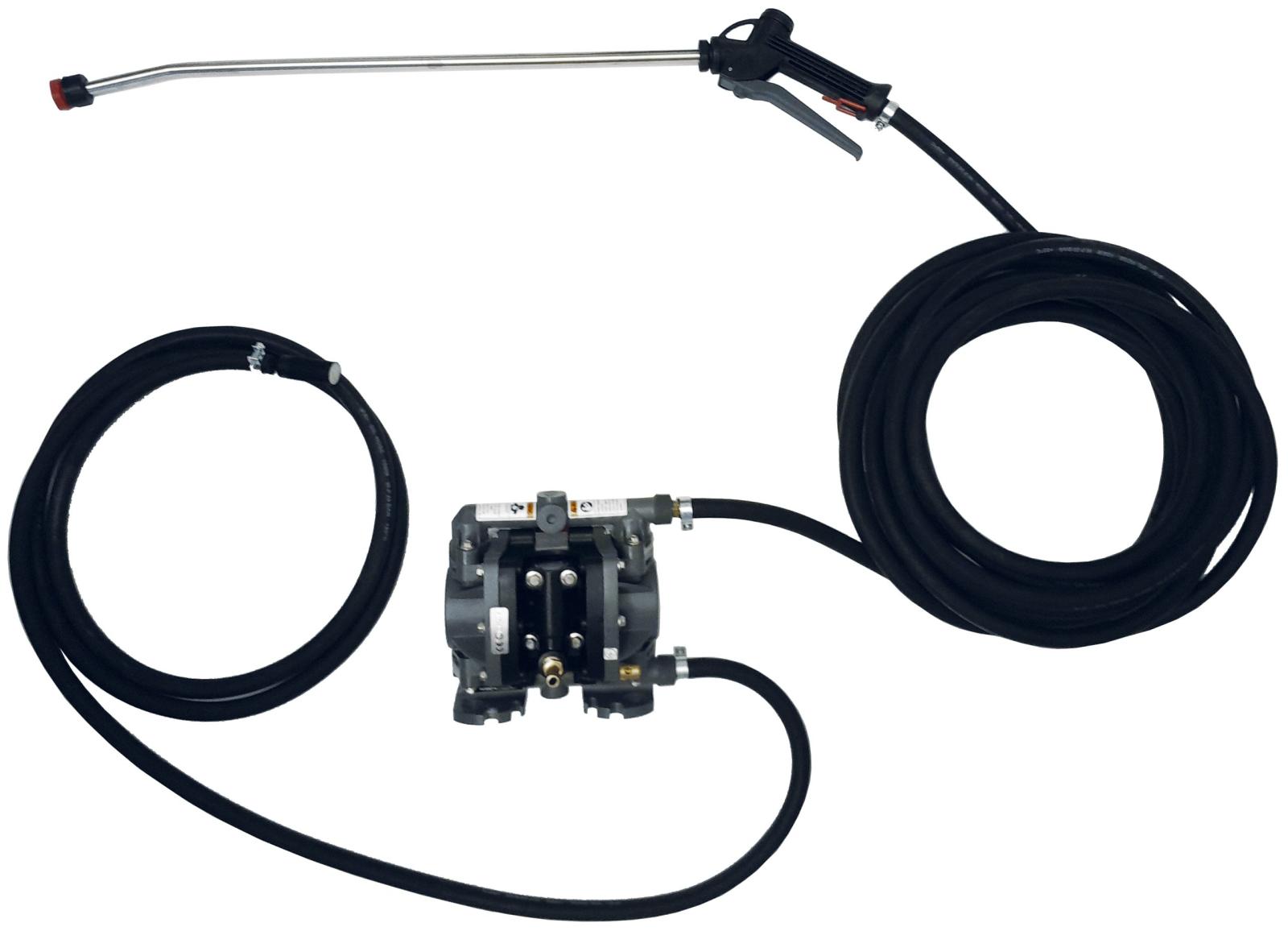 Kit ”Basic” levereras komplett med pump, 600 mm pistolhandtag, sugfilter, slangkopplingar och 12 meter slang vilket kan fördelas som man vill mellan sugslang och avtappning. (Lite enklare pistol).