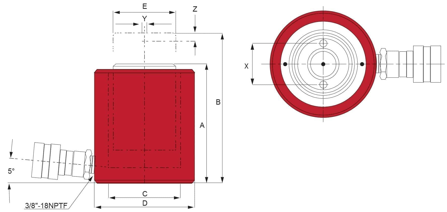 Lågprofilcylinder 10 ton är särskilt lämpad för service, montage och underhållsarbeten där standardcylindrar inte får plats. Den kompakta designen gör den oumbärlig i verkstad, bygg och fältarbeten där höga krafter behöver appliceras på liten yta.