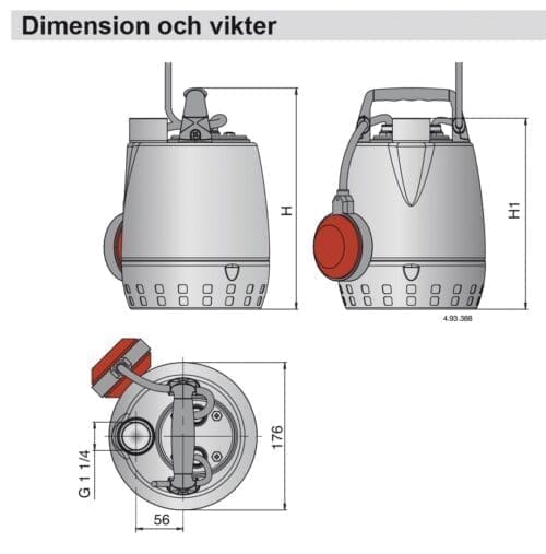 | Höjd H/H1 | 265/230 mm |