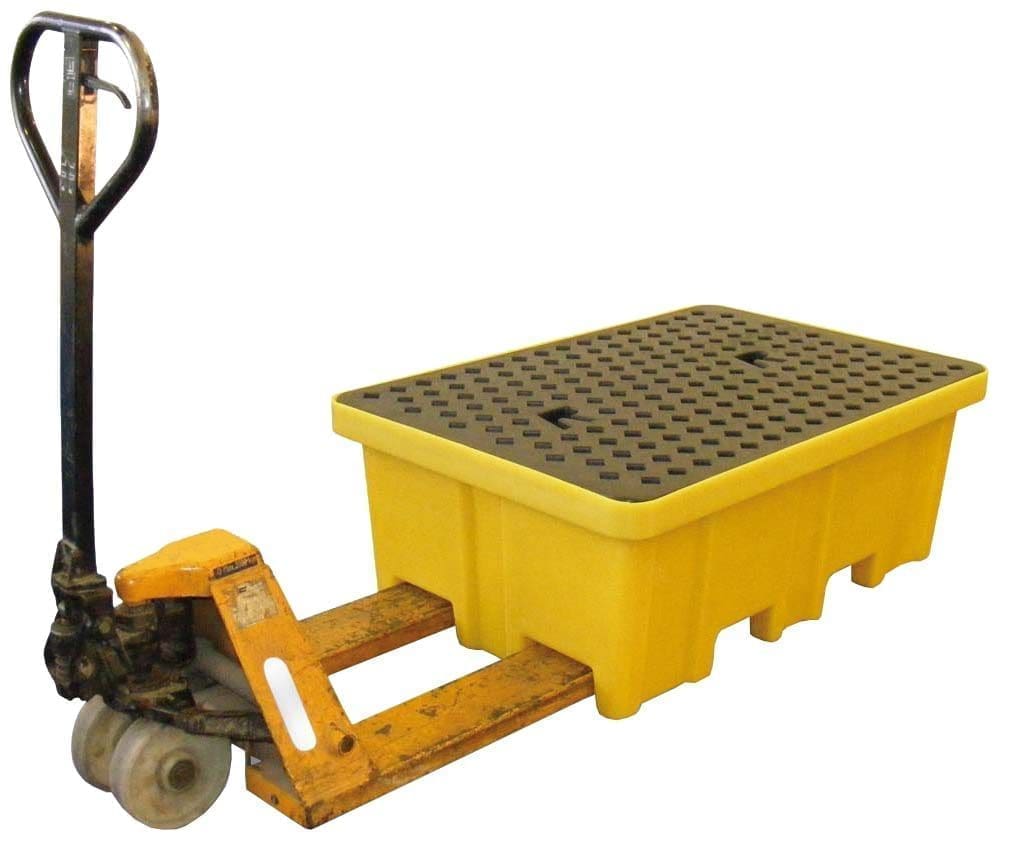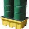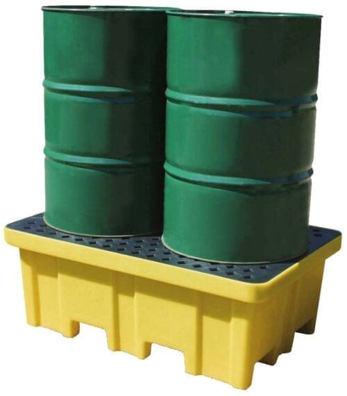 Spillpall i PE (polyeten) för 2 x 205 liter fat med 4-vägs gaffelfickor för enkel förflyttning. Går att transportera med palllyftare. Robust konstruktion och användarvänlig. För lagring och avtappning av aggressiva kemikalier. Lätt att förvara och rengöra. Max belastning 1200 kg.