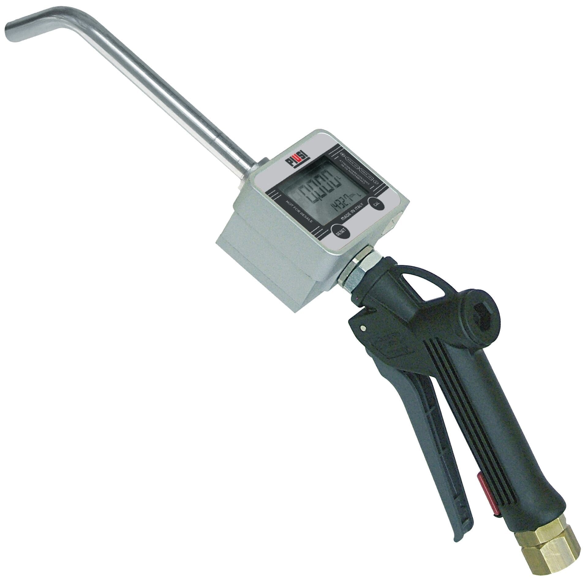 Oval kugghjulsmätare med digital display. Komplett med utloppspip. Mätaren har två separata displayer, en nollställningsbar och ett totalräkneverk inte nollställningsbart.