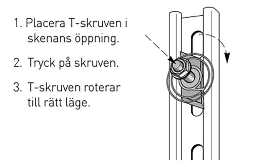 T-skruv M10x35 mm för infästning i takpendlar/ankarskenor.