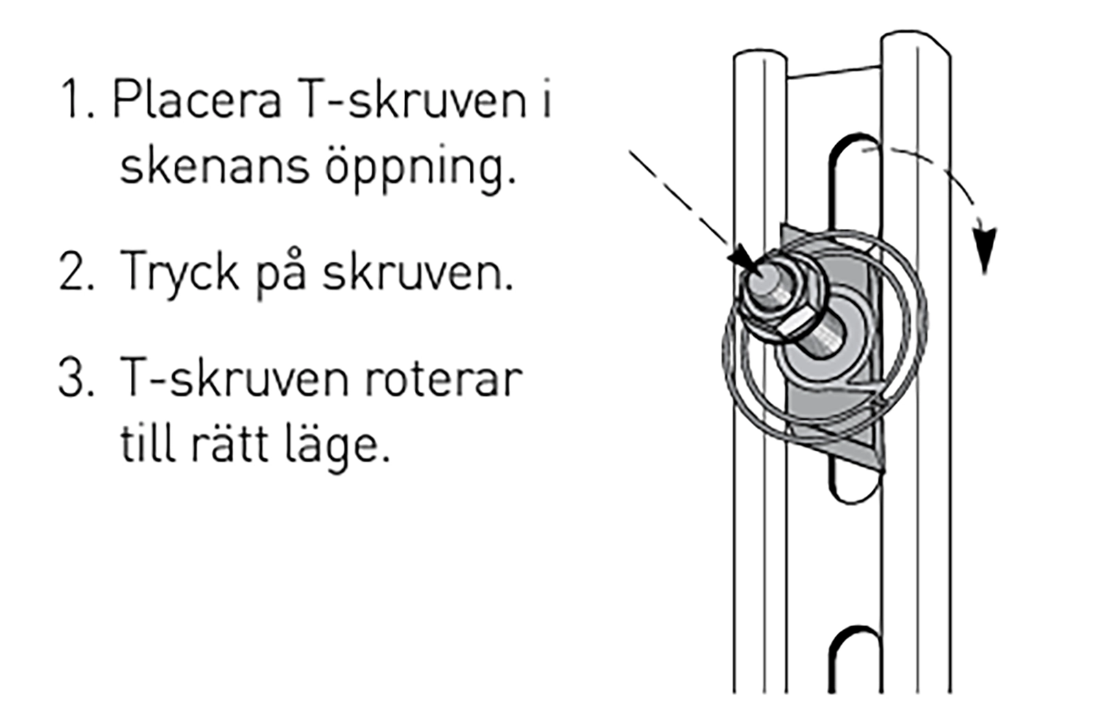 Med ett lätt tryck på T-skruven roterar den in i rätt läge.
